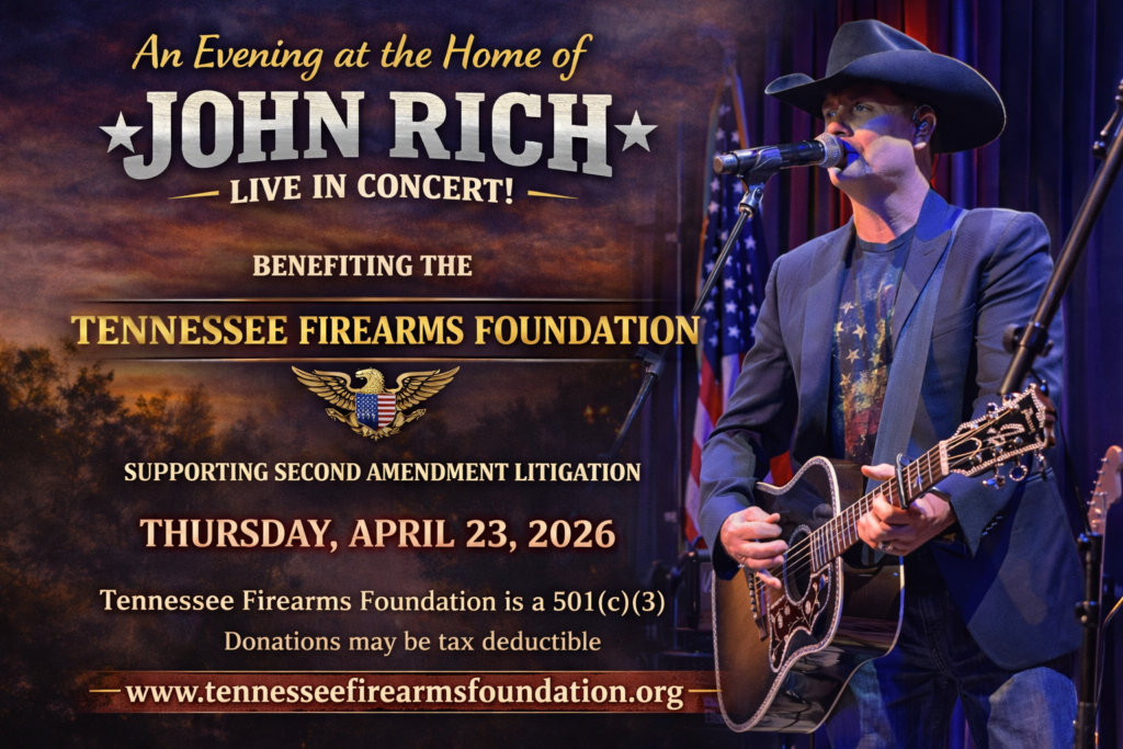 Tennessee Firearms Foundation will host the Liberty and Legacy charity fundraiser on the evening of April 23, 2026 with John Rich at Mt. Richmore to celebrate the litigation victories of the last year and to raise funds to continue the battle in the courts to protect and restore the rights guaranteed by the Second Amendment.